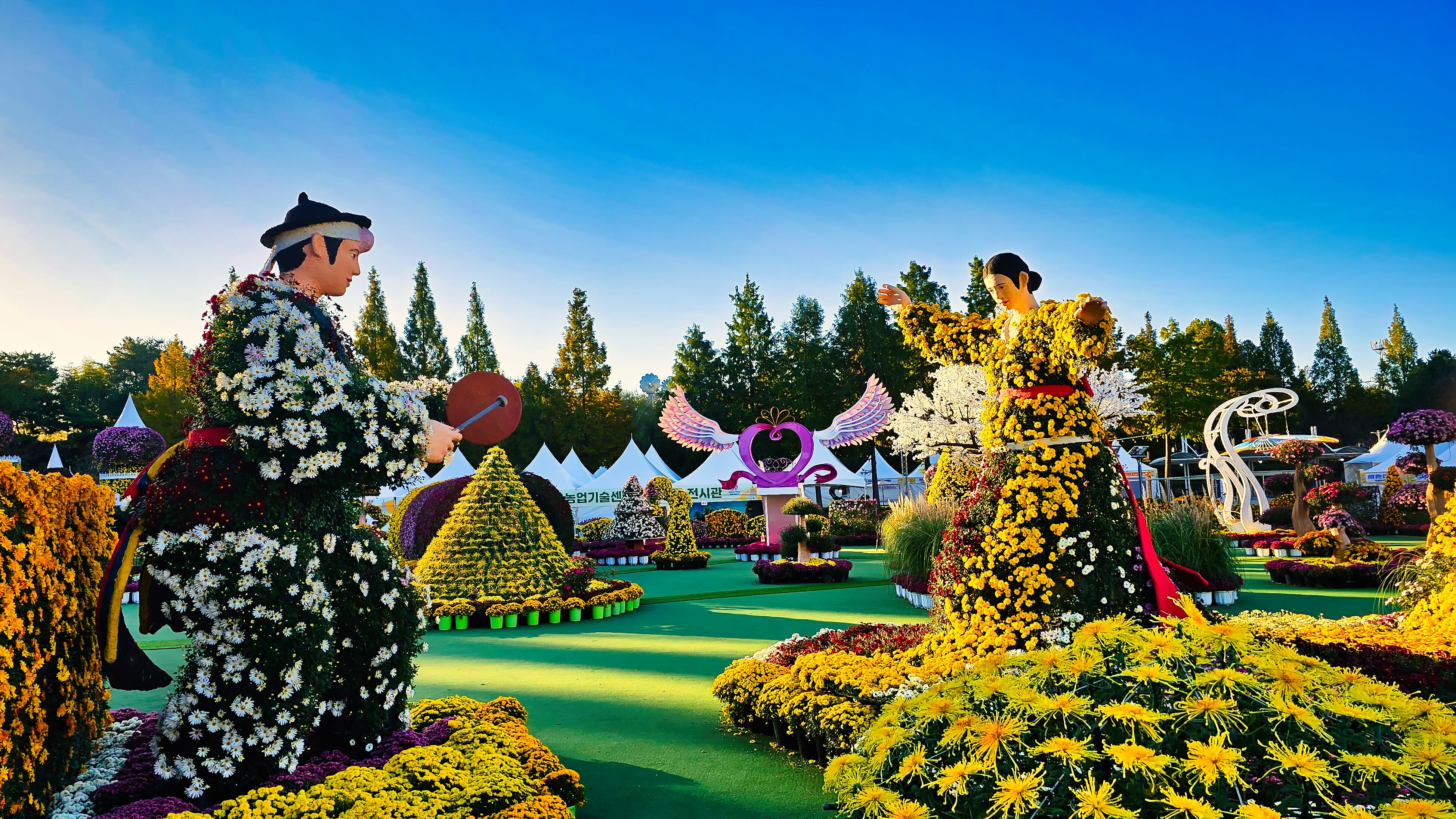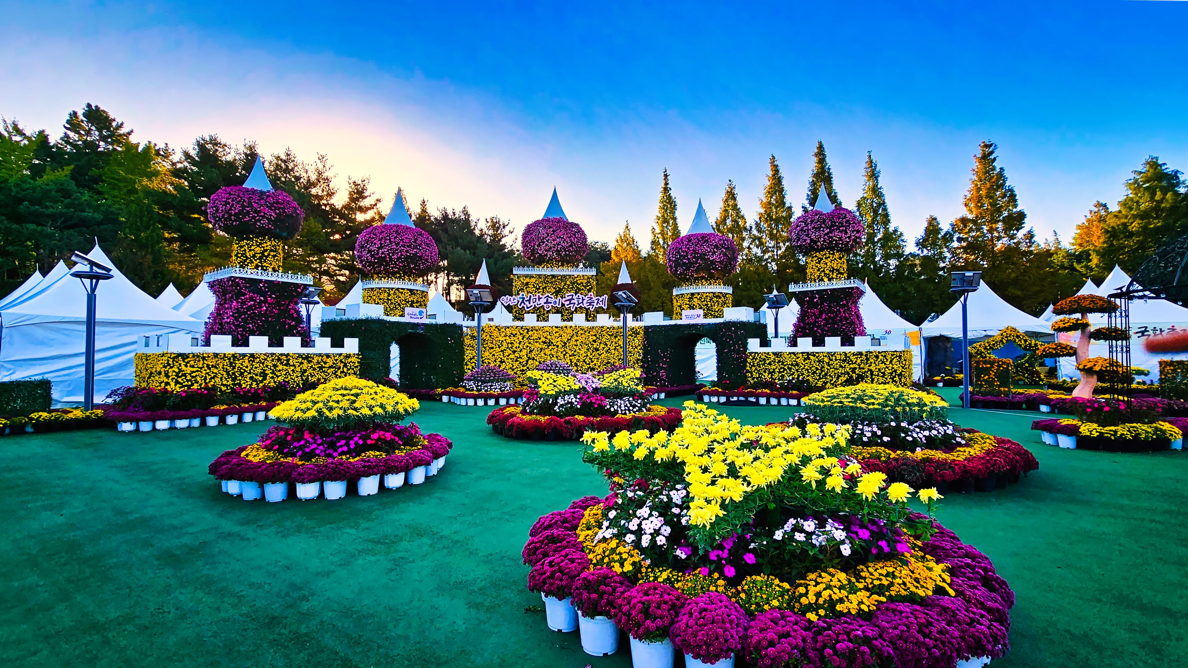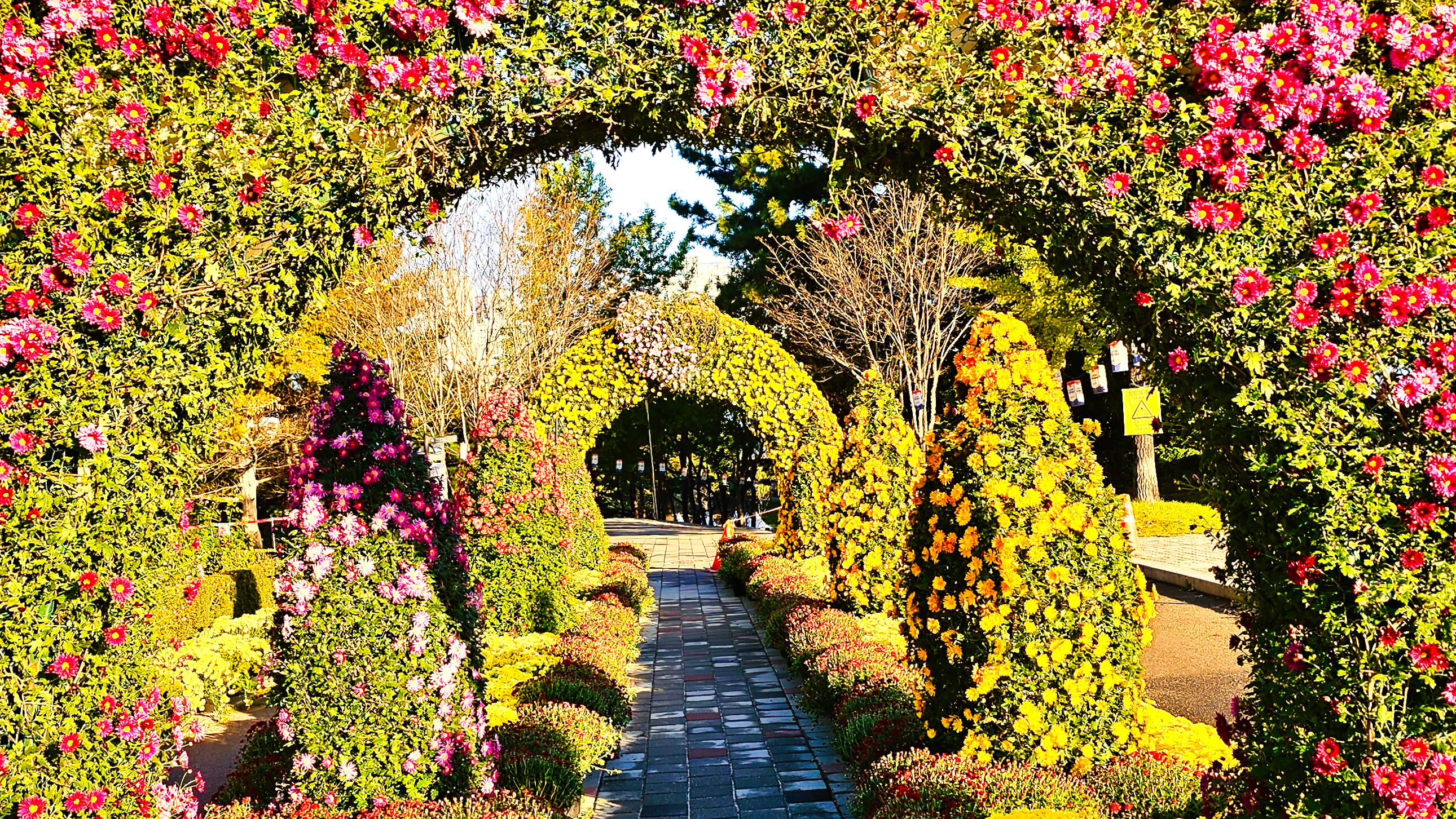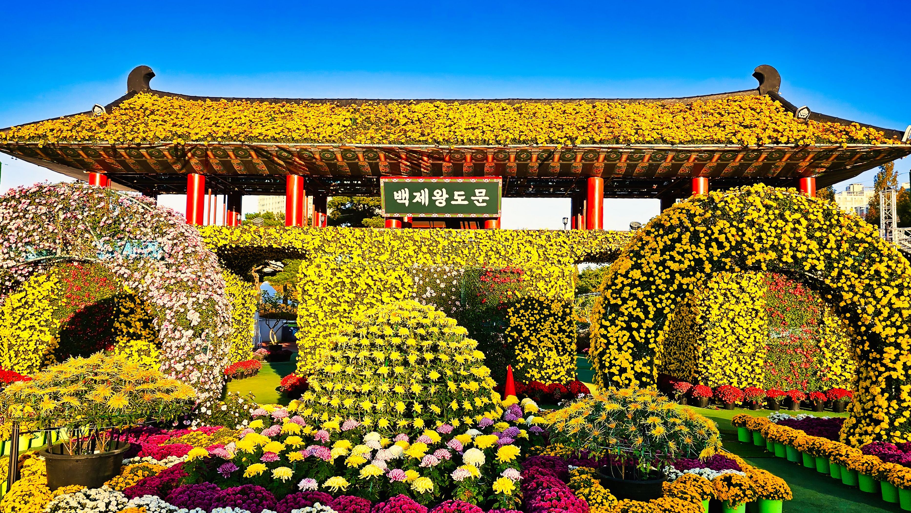 국화축제장에 밝은 햇살이 드리웠다.