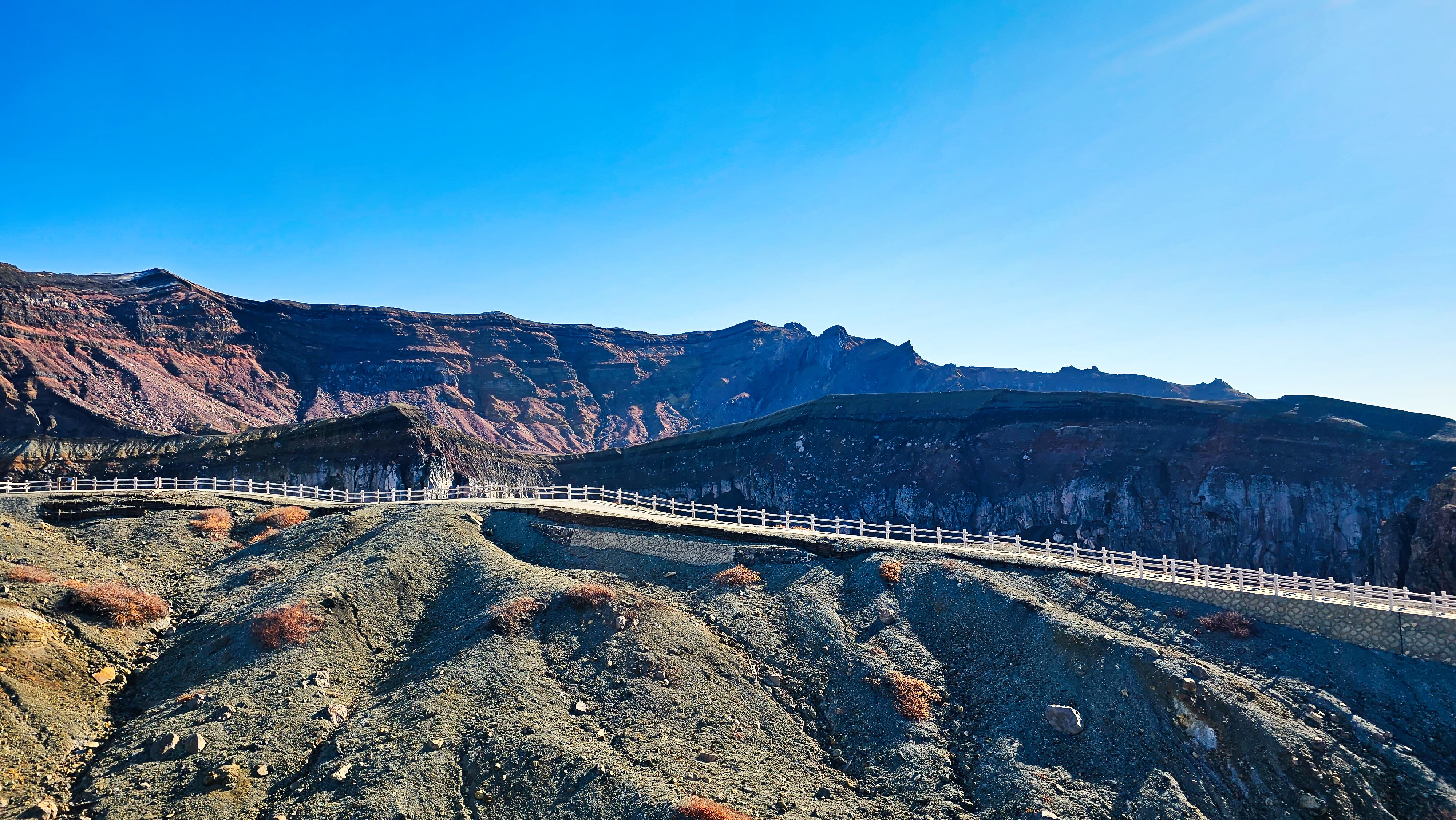 하늘까지 맑아서 분화구 옥색 물웅덩이까지 볼 수 있었다.