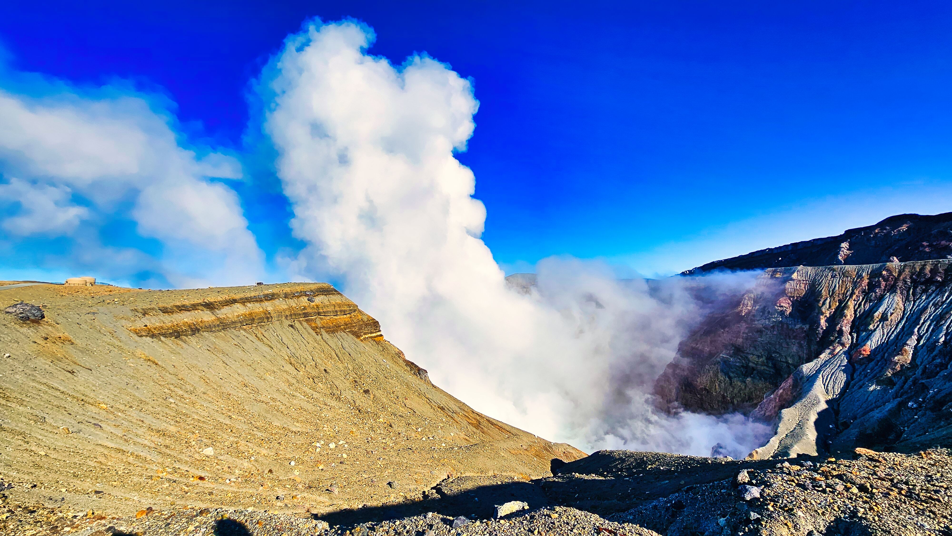 쿠시센리전망대에서 바라본 나카다케(중악) 활화산 분화구.