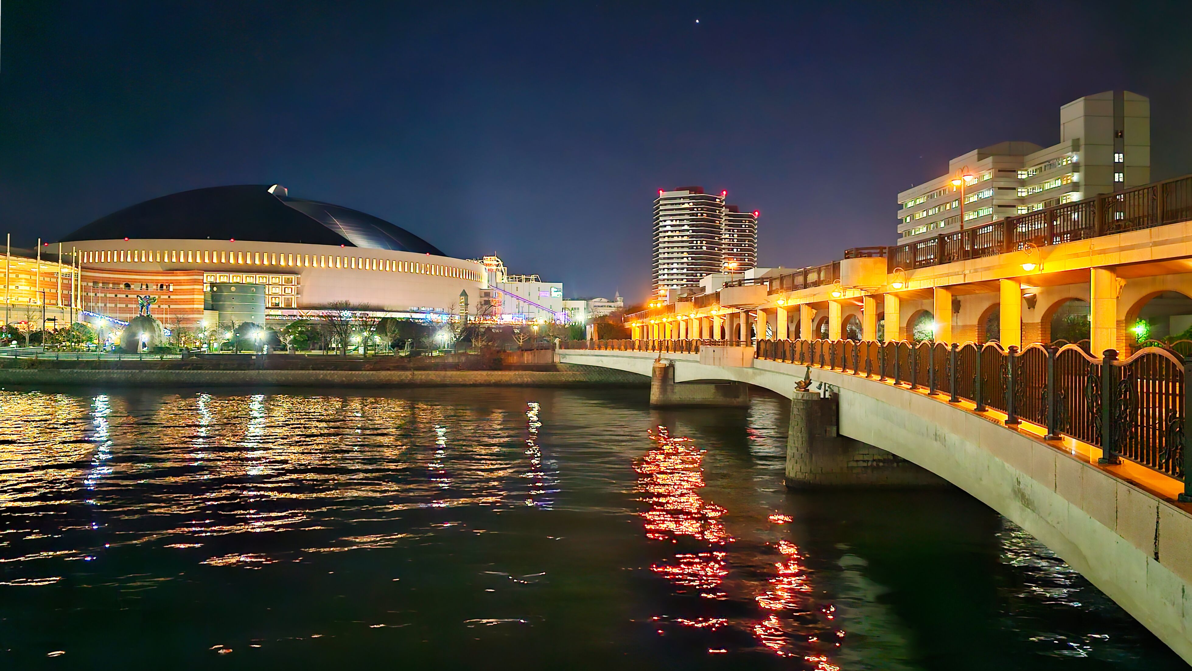 좌측으로 소프드뱅크 야구장도 보이고 이름 모를 호텔도 보인다.