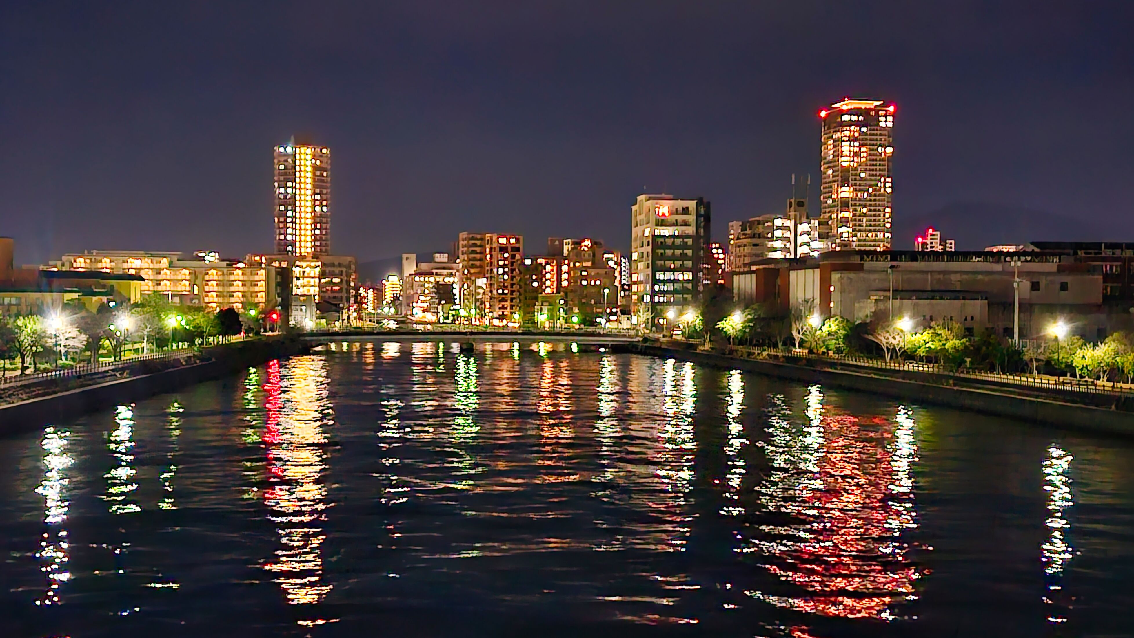 호텔 앞 도로에서 보는 후쿠오카 야경.