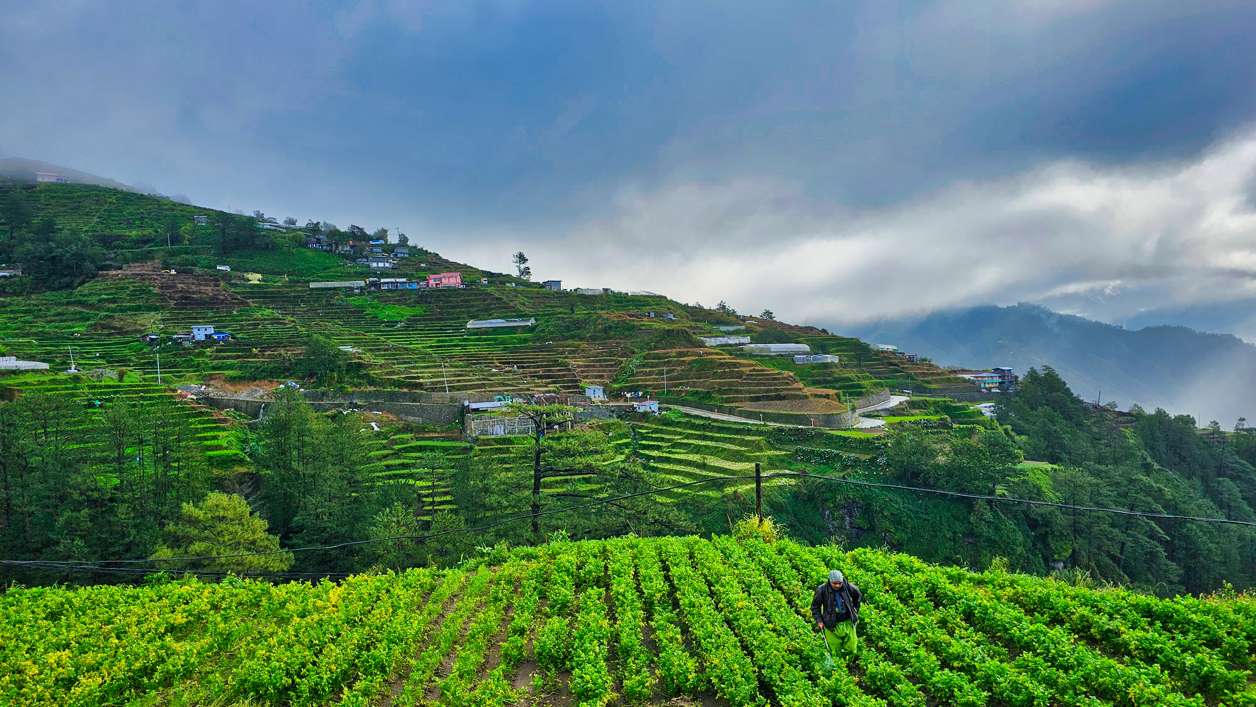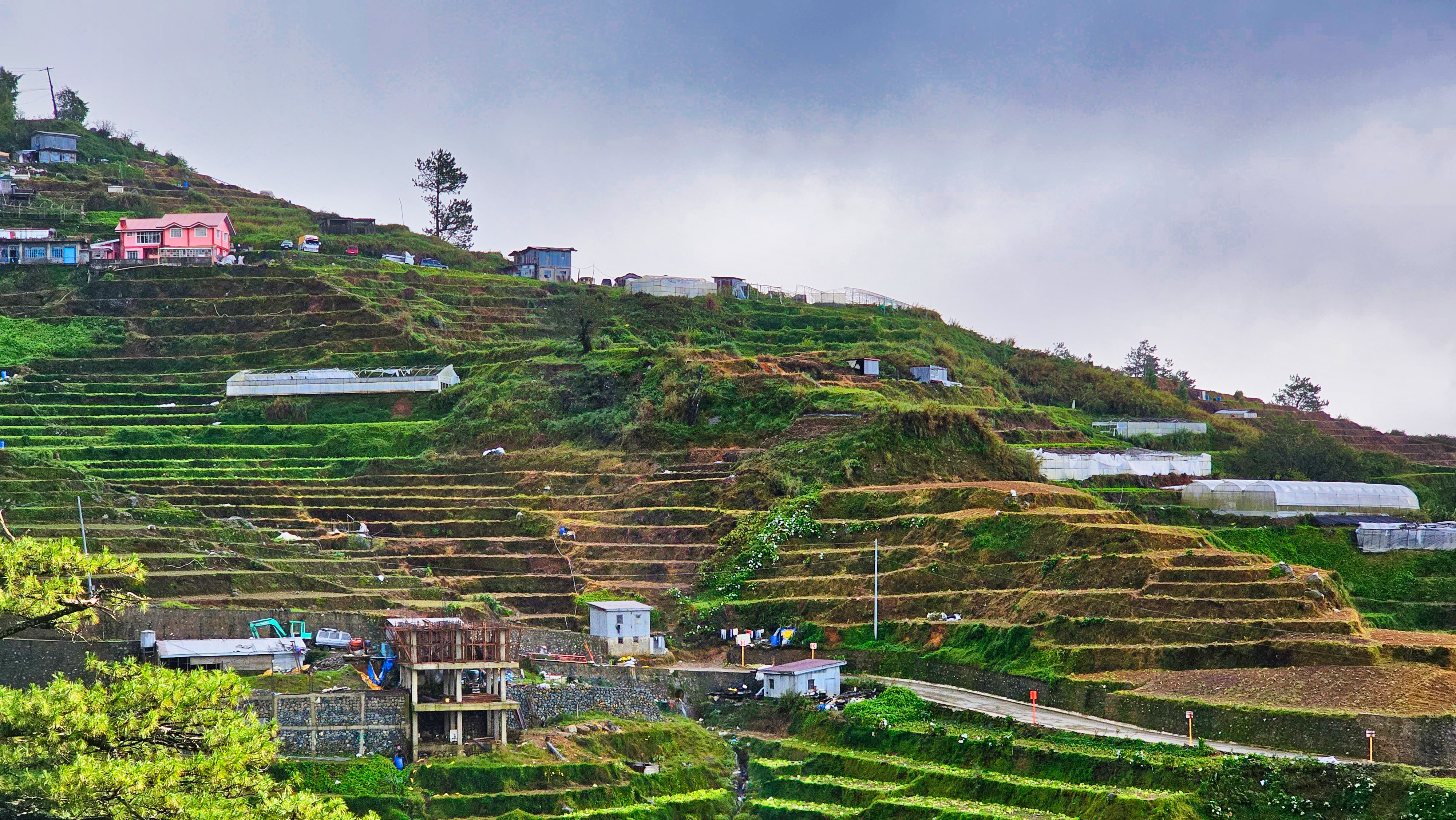 가까운 곳에서 먼 곳까지 다 쳐다봐도 산비탈에 계단식 농토가 보인다.