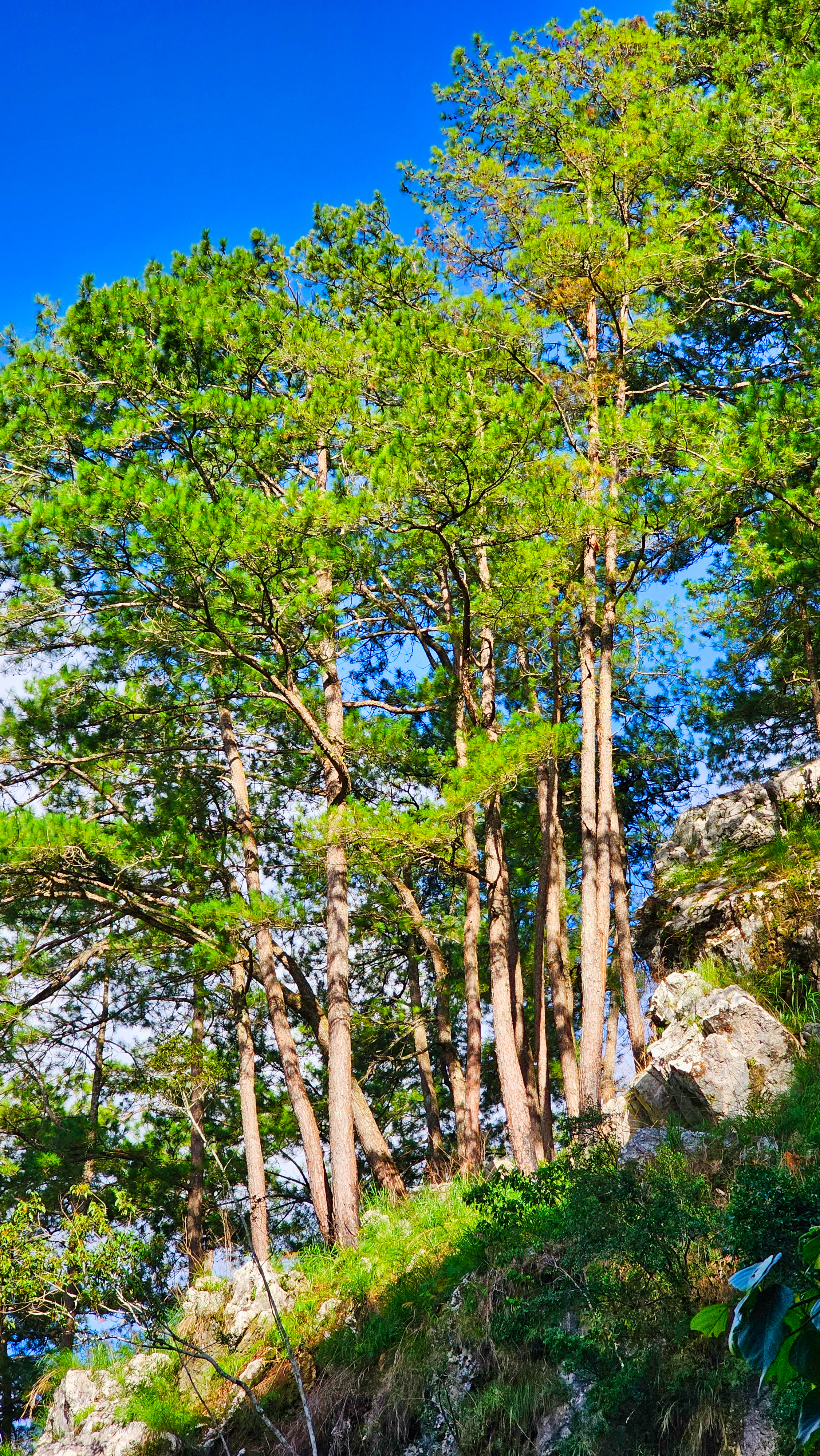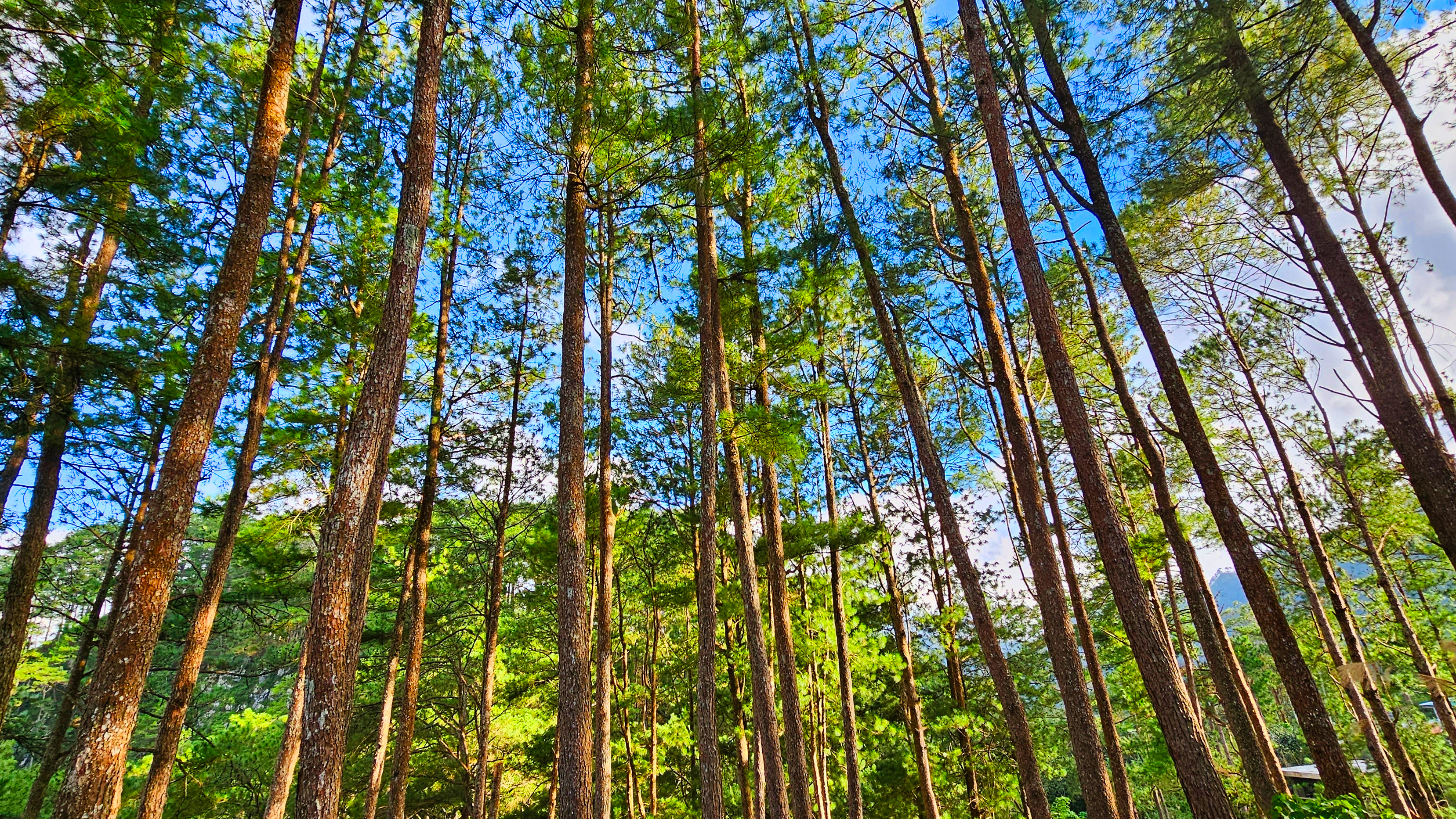사가다에는 편백나무처럼 쭉쭉 뻗은 소나무가 있다.