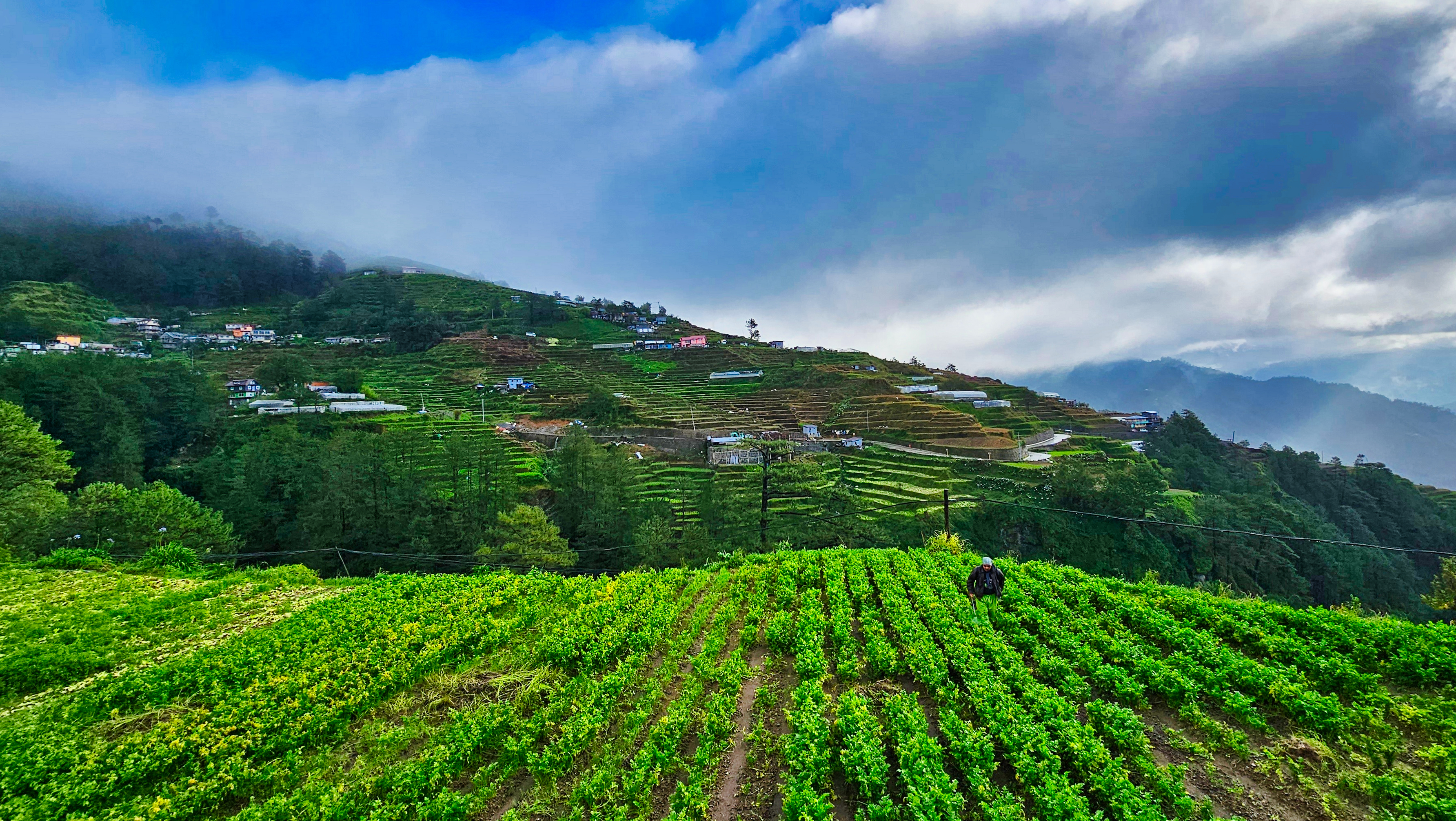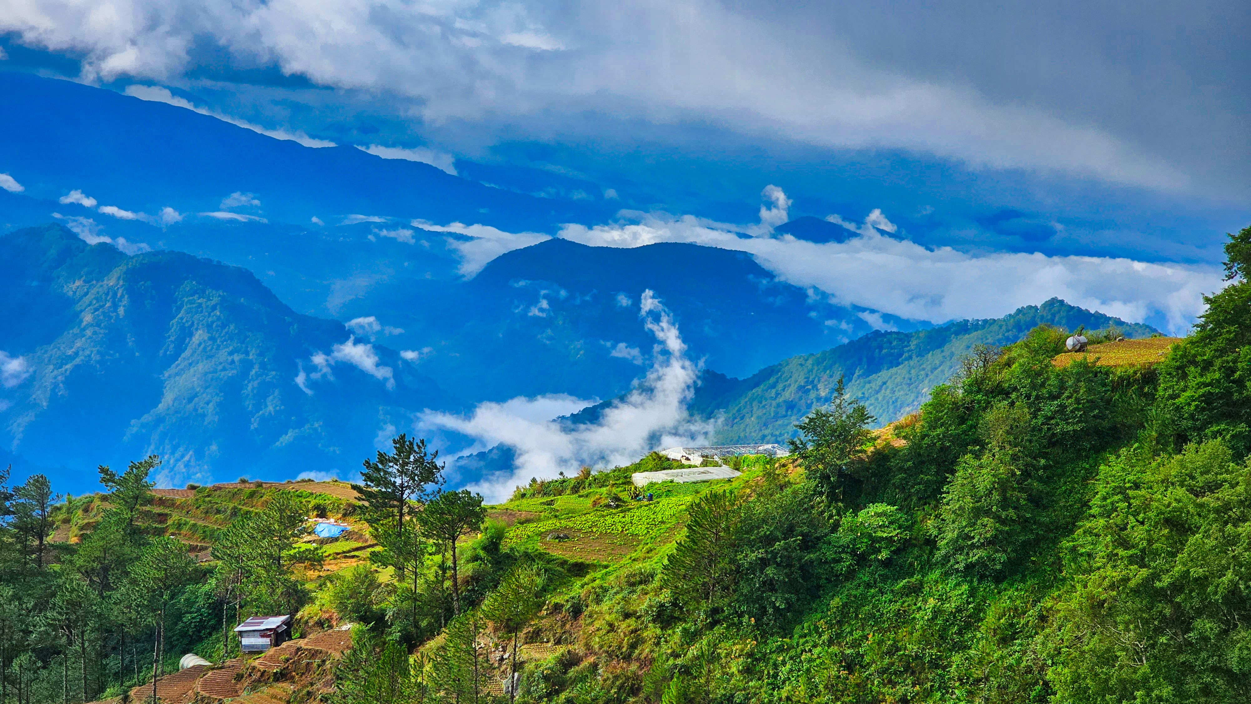 평평한 땅이 많지 않아 이처럼 좁은 공간에 집을 짓고 농토를 일구고 살아가는 사람들.