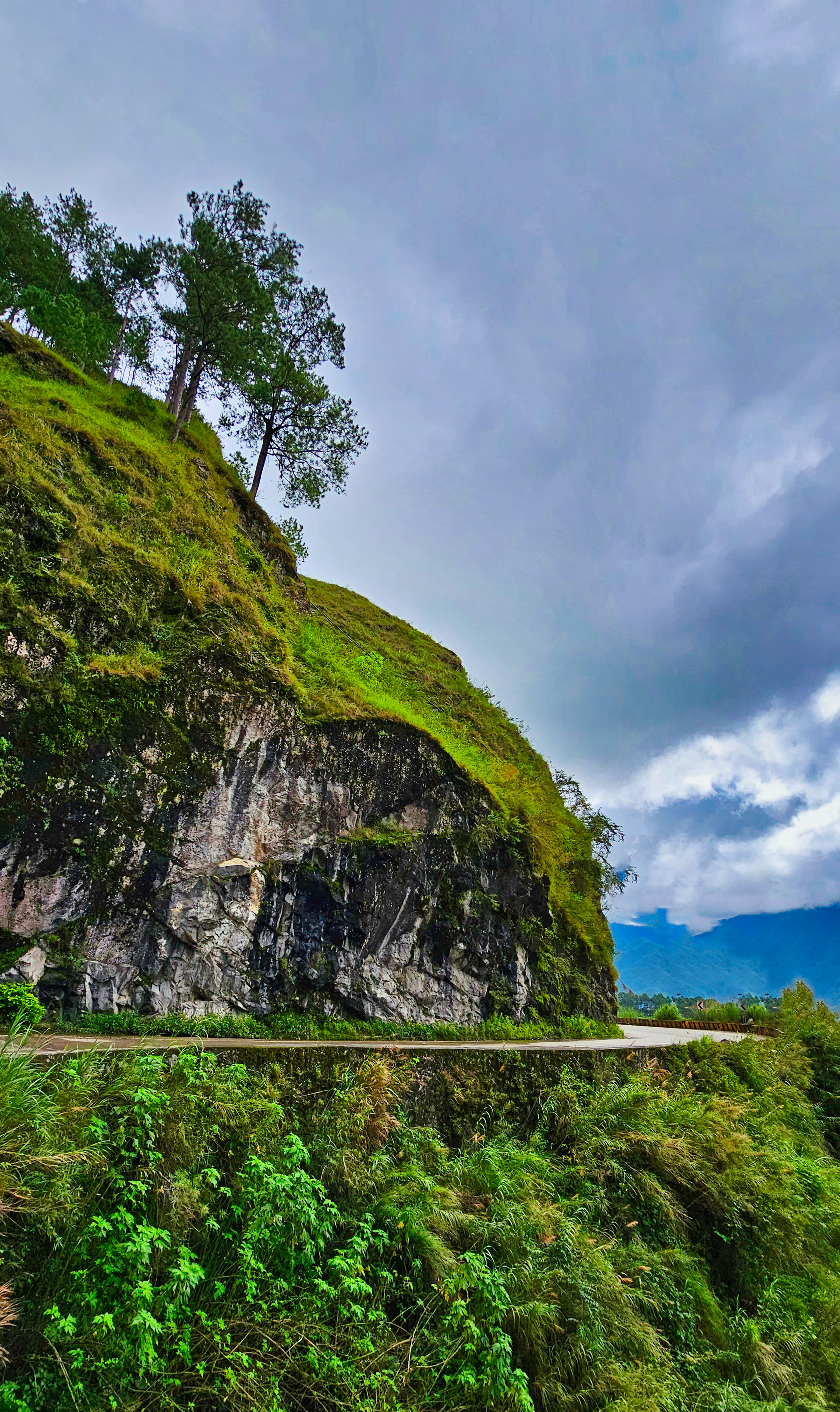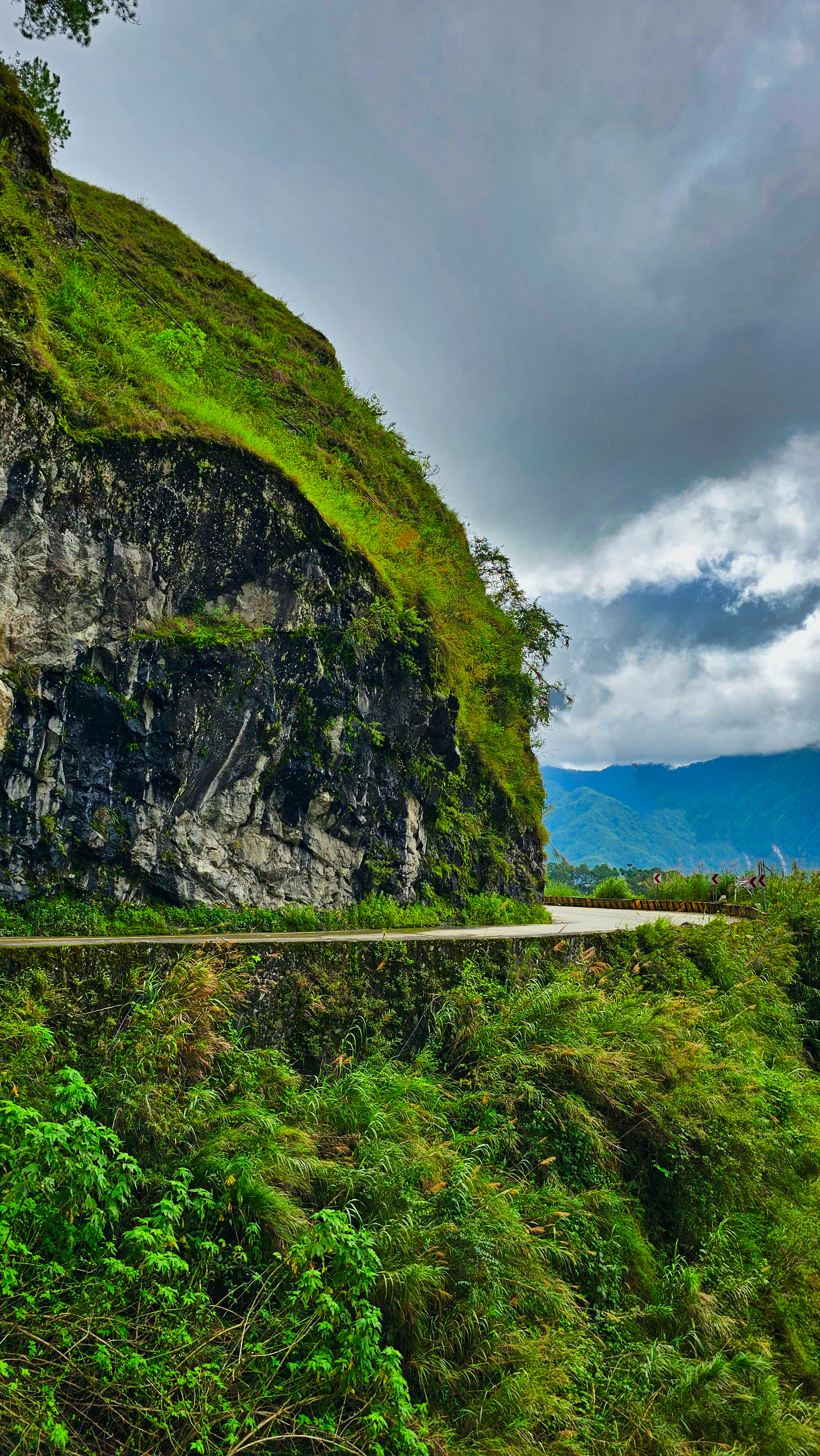 위험한 산맥을 넘고 넘는다. 산사태로 인해 무너진 낭떠러지 비탈길을